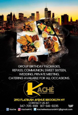 "Located in Marine Park Brooklyn, Kachè Restaurant offers a uniquely upscale dining experience. Offering the best in carribean cuisine coupled with wonderful atmosphere."