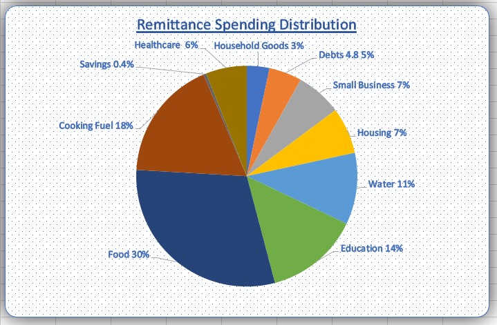 Below is an approximate distribution of remittances in each sector of the economic life of the Haitian individual according to the humanitarian Practice Network. The numbers can be significantly different when comparing urban and rural areas.