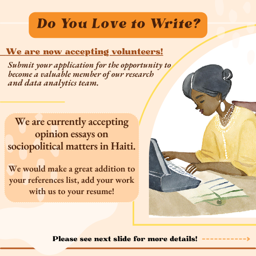 If you want the HAMREC editorial board to publish your articles, remember that they should be free of grammatical and spelling errors, well-researched, and between 700–1200 words. You can submit your papers in English, Creole, Spanish, or French. The tone should be respectful and professional. There should be no name-calling, foul language, anger, incitement to violence, evil wishes, or technical jargon. Write as objectively as possible, and offer honest answers to common problems in Haiti or the diaspora. We reserve the right to turn down any article we think is an advertisement. Plagiarism is not okay in any personal opinion or other technical writing. To avoid misinformation, please include links to your sources in the text. Please provide a short bio of each author who contributed to the piece.